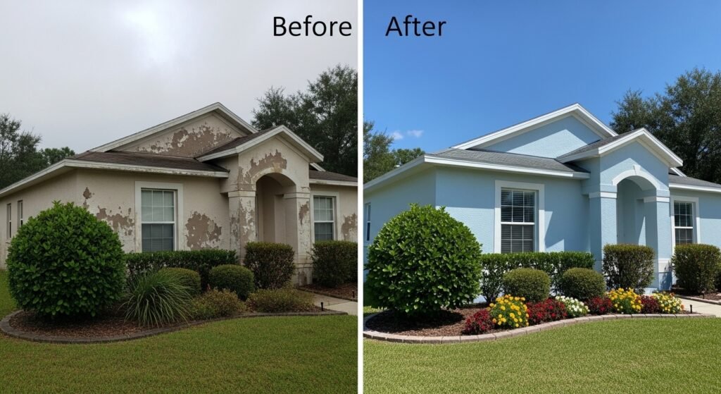 Climate-Specific Products: We use high-performance, 100% acrylic paints for the exterior, which offer superior UV and mildew resistance.